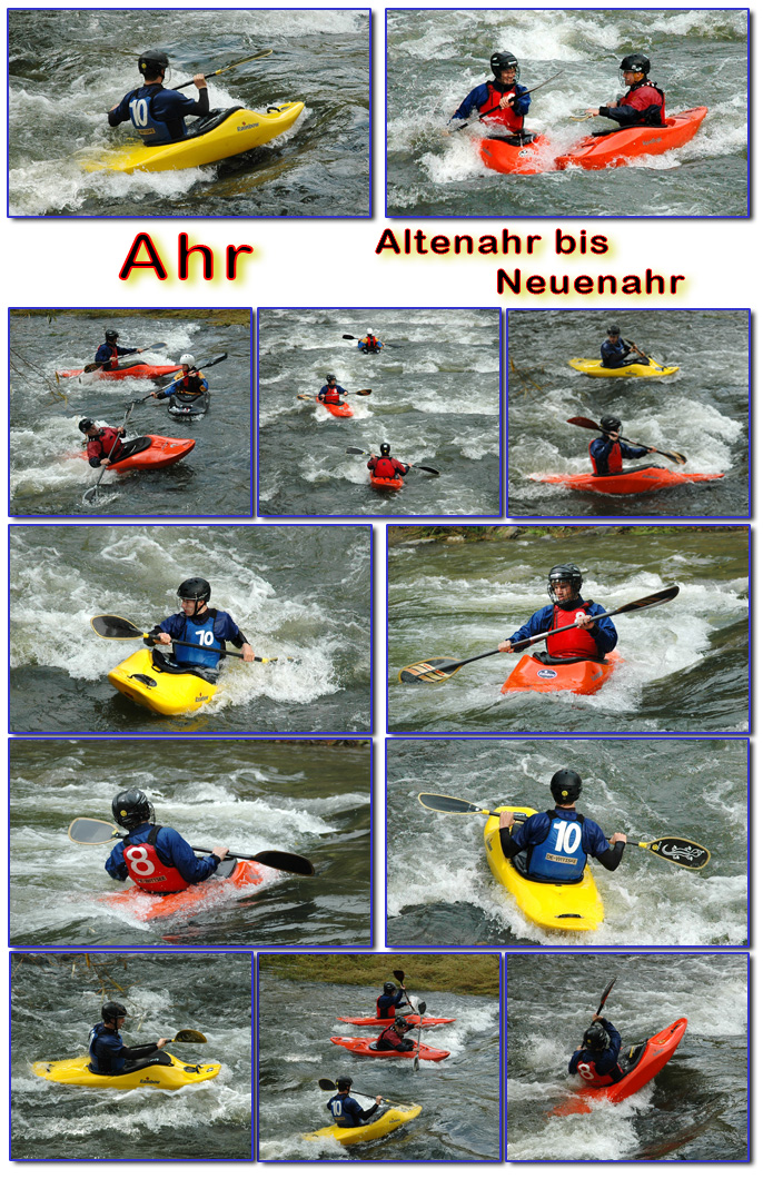 Wildwasser (Paddeln) Kanu fahren im Wildwasser ist keine typische Sportart für den Niederrhein, aber von dieser Sportart geht ein besondere Faszination aus. Wenn man diesen Sport richtig ausüben will, dann muss man weitere Anreisen in Kauf nehmen. Zwar gibt es auch bei uns einige Möglichkeiten und das ist die Erft vor den Toren von Neuss. Leichtes WW aber für Anfänger und zum Üben geeignet. ![]() Eine zweite Möglichkeit bietet die Ahr ( aber nur bei genügend Wasser, Pegel abfragen) Auch hier handelt es sich um leichtes WW.
